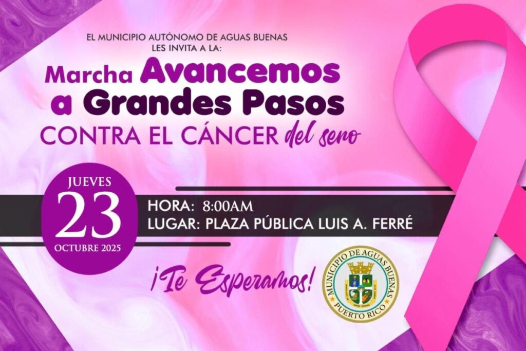 El Municipio de Aguas Buenas anunció la celebración de la marcha “Avancemos a Grandes Pasos contra el Cáncer del Seno”, que se llevará a cabo mañana jueves, 23 de octubre de 2025, desde las 8:00 a.m. en la Plaza Pública Luis A. Ferré, como parte de los esfuerzos de concienciación durante el Mes de la […]