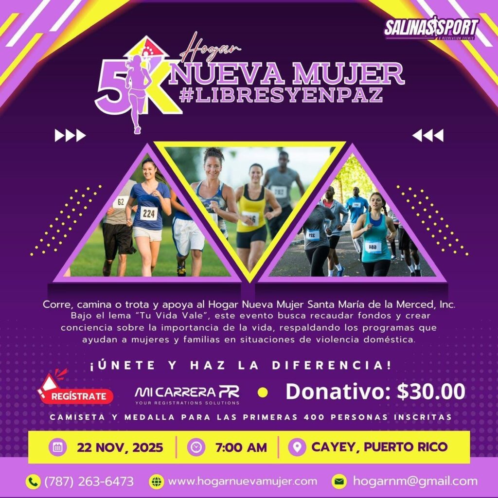 Con el propósito de promover la prevención de la violencia doméstica, la salud emocional y el bienestar comunitario, Hogar Nueva Mujer anunció la celebración de su primer evento deportivo 5K Hogar Nueva Mujer-Libres y en Paz a llevarse a cabo el sábado, 22 de noviembre de 2025 a partir de las 6:30 a.m. en el […]