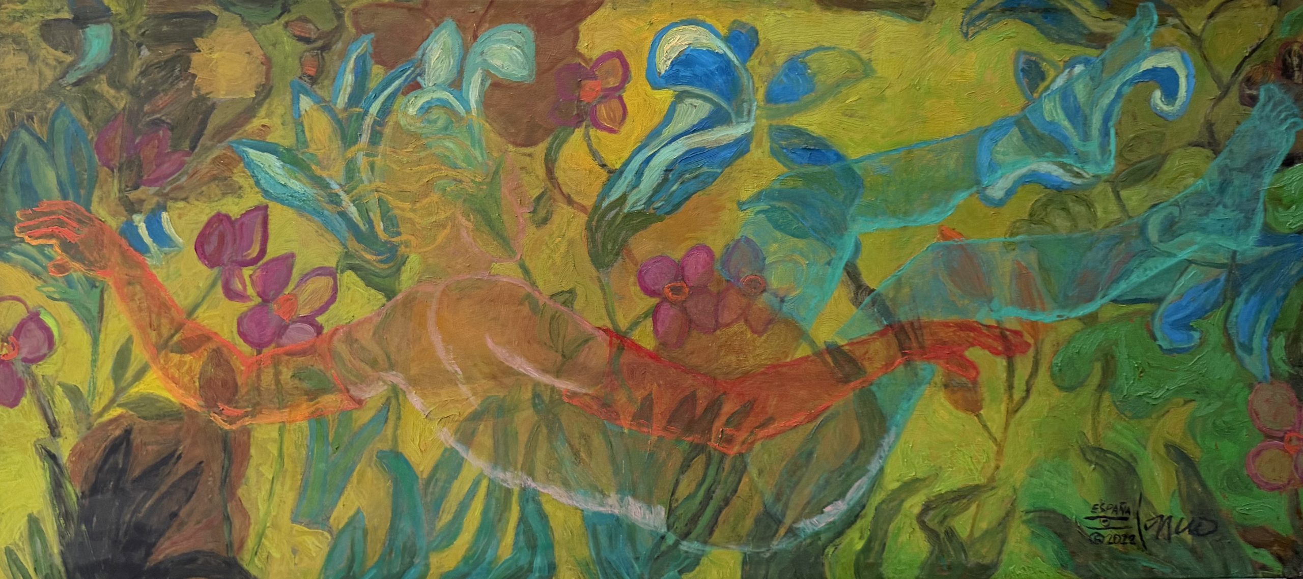 La muestra reunirá sobre treinta obras recientes que revelan el universo sincrético, vibrante y profundamente personal de Cancio, cuya paleta ha sido intensificada por su experiencia europea y su reencuentro con la exuberancia caribeña. Las piezas, que ocupan ambos niveles de la galería, componen un recorrido visual por su simbología tropical y espiritual, desde flamencos y flamboyanes hasta budas, santos y máscaras ancestrales.