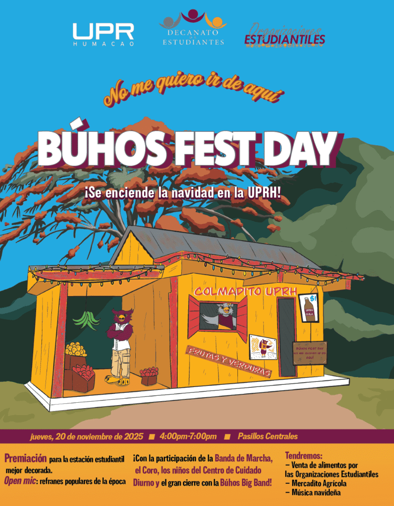 La Universidad de Puerto Rico en Humacao (UPRH) invita a la comunidad universitaria y al público general a disfrutar del evento ¡No me quiero ir de aquí! – Búhos Fest Day, una celebración especial que marcará el inicio oficial de la temporada navideña en el campus. La actividad se llevará a cabo el jueves, 20 de […]